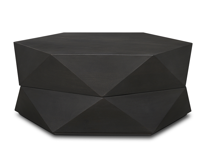 The Aris is an all-wood coffee table with a striking geometric profile and loads of storage space.